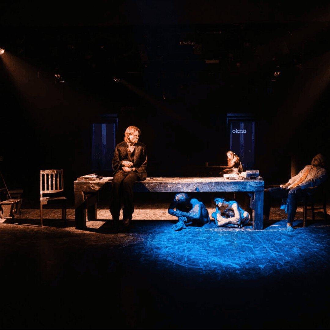Scenografia działała jak zamknięta przestrzeń, z której trudno było się uwolnić. Ciemna i ciasna, zdominowana przez ciężkie, surowe materiały, natychmiast narzucała swój rytm i odbierała swobodę oddychania, jak warsztat stworzony nie do pracy z drewnem, lecz z ludzką wytrzymałością. Glina, pył, stare stoły, chropowate deski – wszystko lepiło się do rąk i nozdrzy, tworząc atmosferę duchoty. Było widać, jak aktorzy walczą z materią, ale i ty, widzu, stawałeś się jej częścią: siedząc czasem nie na fotelach, tylko na podłodze, tuż u ich stóp. Ten układ nie pozwalał schować się w bezpiecznej ciemności widowni. Nagle byłeś wewnątrz akcji, w warsztacie, gdzie dłuto mogło uderzyć i w ciebie.