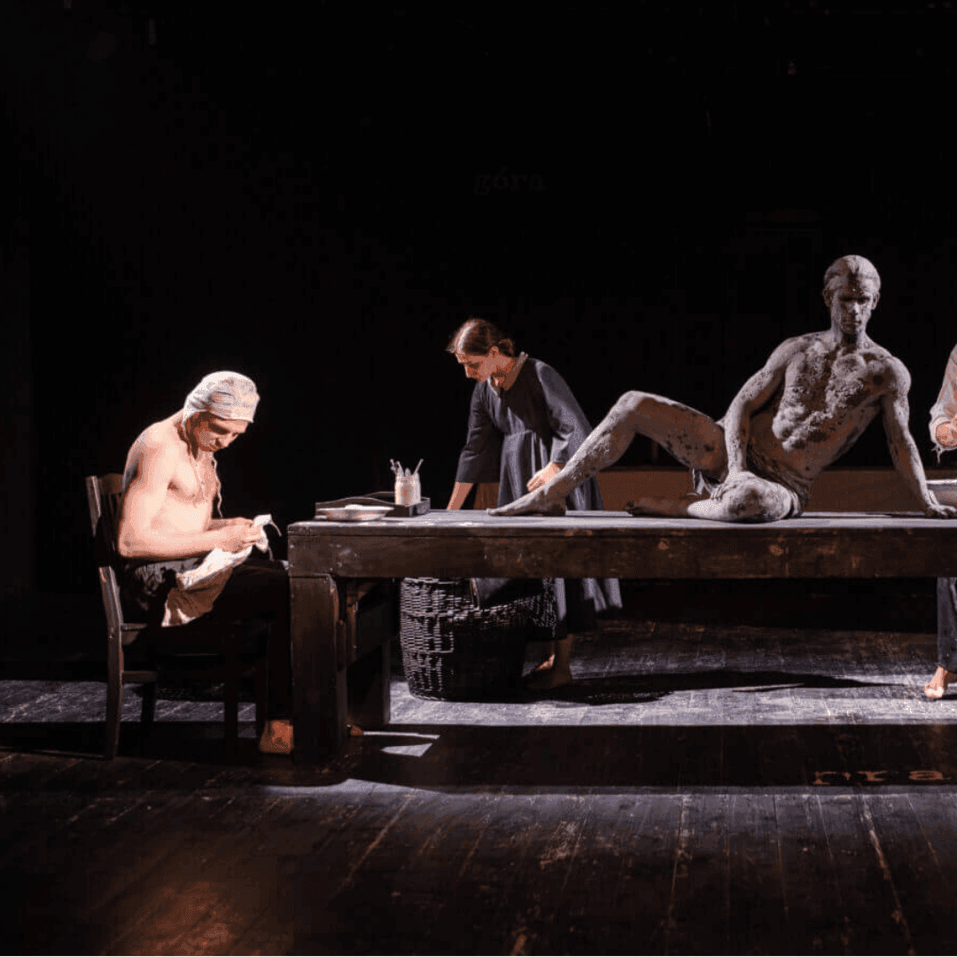Opowieść o artyście zamienia się w opowieść o człowieku stającym naprzeciw Bogu. Czy raczej: o człowieku, który Bogu próbuje wyrwać władzę nad światem. Ojciec–rzeźbiarz staje się demiurgiem, tworzącym i niszczącym, zaklinającym materię w kształty, które mają ocalić albo potępić. Rodzina, obecna cały czas obok, zaczyna przypominać chóralne figury – Matka, Córka, Czeladnik, Rzeźba – postaci, które w prostych dialogach zadają pytania o sens ofiary, o granice miłości, o cenę sztuki.